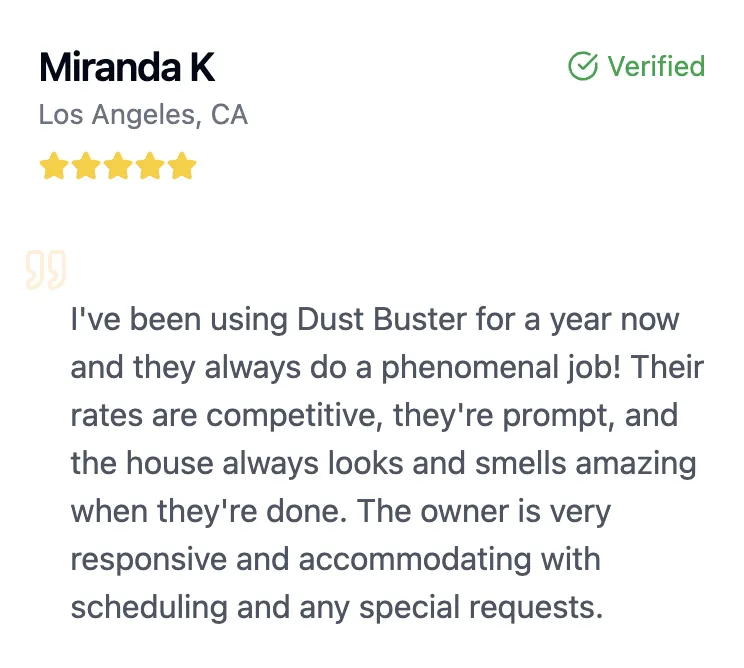 Between work deadlines, school drop-offs, meals, and managing the home, there’s barely time to breathe — let alone scrub baseboards. Dust Buster Cleaners steps in so you don’t have to carry it all. We take cleaning off your plate so you can focus on what matters most.